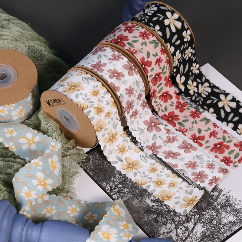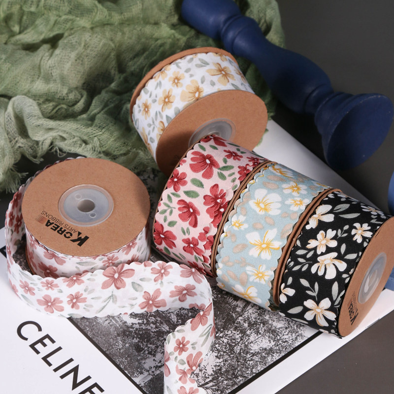 25mm-40mm Double Face Weave Edge Floral Printed Polyester Ribbon cho trang trí quần áo và gói hộp quà tặng![]()